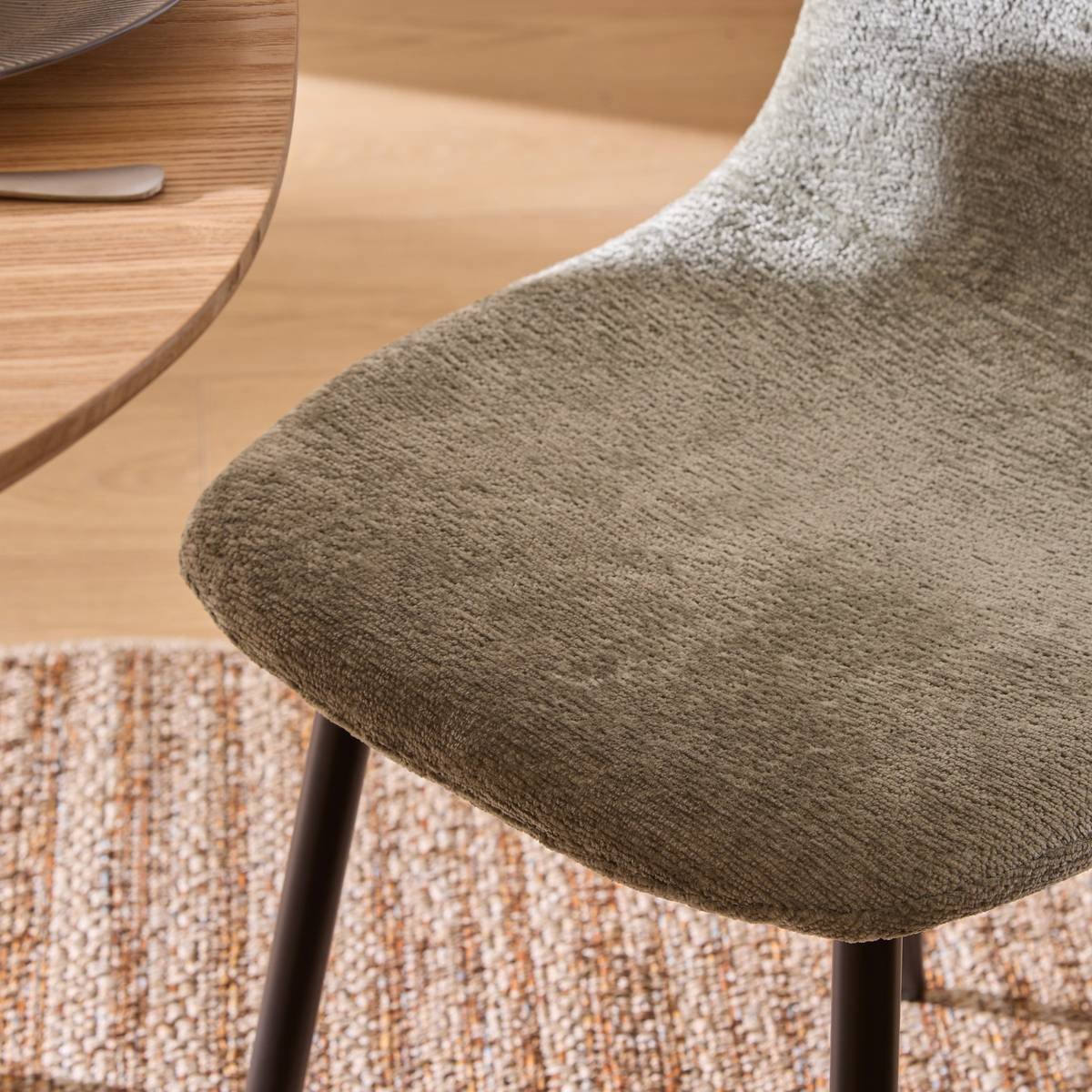 Elle est recouverte d’un agréable tissu en polyester certifié Oeko-Tex®. De plus, son rembourrage important vous assure un confort optimal. Les pieds en métal sont à la fois discrets et résistants. Jouez sur le contraste des matières en associant votre chaise Tyka à un grand tapis en jute Atmosphera.