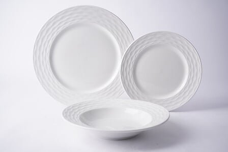 Composition du produit: LOT : ASSIETTE PLATE – Produit : PORCELAINE // LOT : ASSIETTE CREUSE – Produit : PORCELAINE // LOT : ASSIETTE DESSERT – Produit : PORCELAINE //